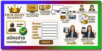 สมัครไพ่บาคาร่า ฮอลิเดย์ ปอยเปต ผ่านระบบถ่ายทอดสดมาตรฐานสากล สะดวก รวดเร็ว และปลอดภัย รองรับการเล่นบนมือถือและเว็บแบบไม่ต้องดาวน์โหลด ภาพคมชัด เล่นง่าย ได้เงินจริงทุกที่ทุกเวลา พร้อมทีมงานดูแลตลอด 24 ชั่วโมง